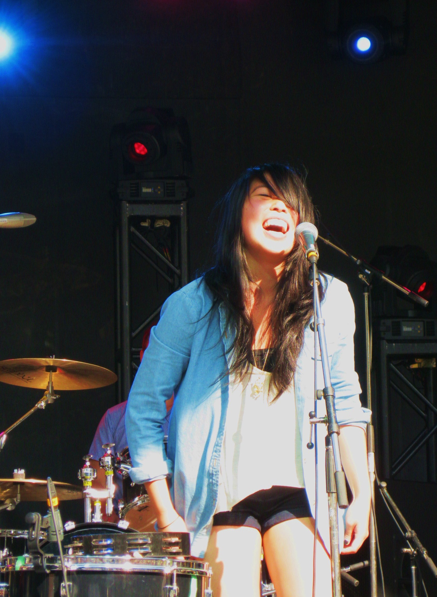 On the fashion front, lead vocalist (and percussionist) Andrea Lo was rocking the shorts look with a chambray shirt, lace backed top & 70’s style wedges.