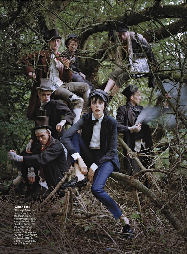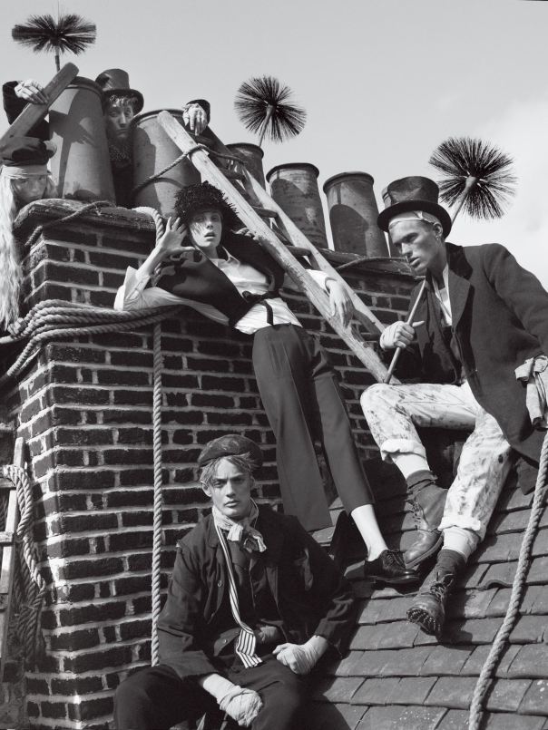 Shot by photographer Tim Walker it features Edie Campbell as the lead model who plays ‘Oliver Twist’ in this theatrical fashion photo-shoot styled by Grace Coddington.